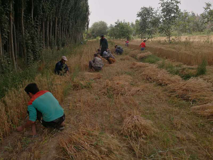 6月20日清晨9点,乘着第一缕阳光,和田地区农机局驻喀提亚克村工作队组织本村志愿服务队人员为本村困难农户家收割小麦。在麦田里大家撸起袖子干劲十足,在欢声笑语中,你追我赶,转眼一片片小麦平静的趟在了地头。一个上午,共为4名农户家收割了6亩小麦,为农户节约成本500多元。